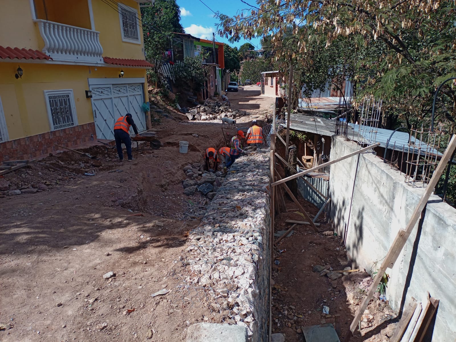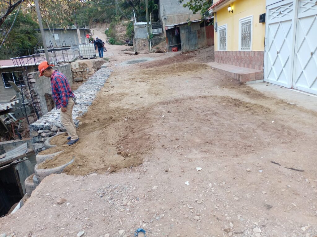 Muros de gaviones, habilitación paso de emergencia en Col. Villa vieja, Tegucigalpa, F.M.